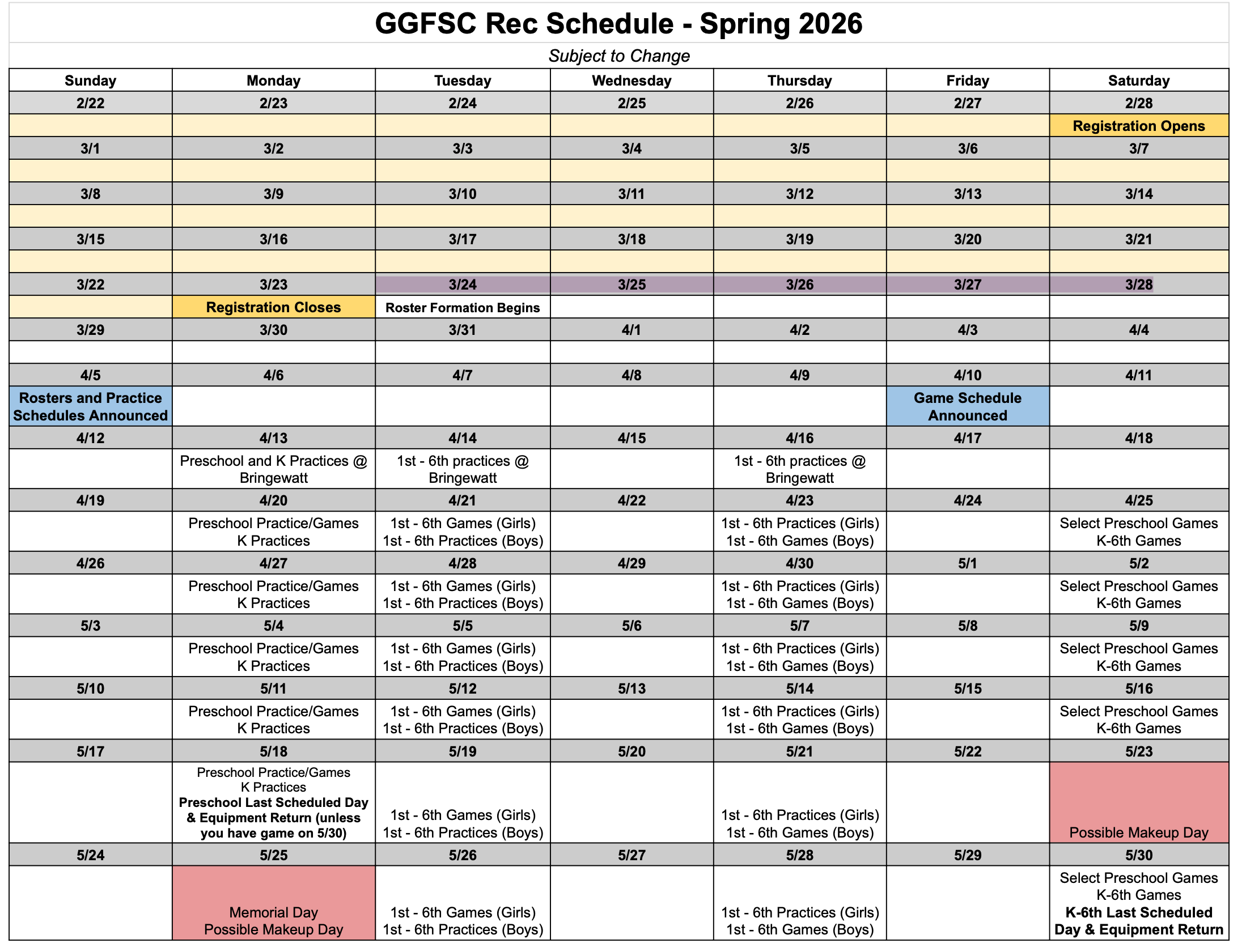 General Rec Schedule